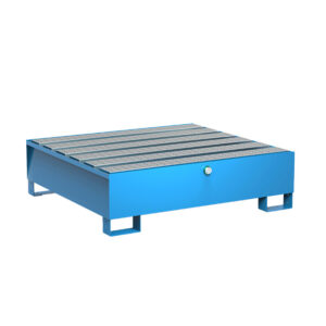Auf den geschlitzten Einlegeböden lassen sich Ölkanister für bis zu 6 Einheiten pro Einlegeboden leicht organisieren. Die Schlitze in den Böden haben eine doppelte Funktion: Einerseits erleichtern sie das Eintropfen von Flüssigkeiten in die dichten unteren Wannen, andererseits ermöglichen sie die Anbringung eines praktischen Trennelements, das die Kanister blockiert und ihre Bewegung verhindert. Die Tiefe des Einlegebodens ist geringer als das Fach des Flüssigkeitsschranks, so dass der Hahn das Schließen der Türen nicht behindert und außerdem der Raum unter dem Hahn selbst frei bleibt, so dass Zapf- und Umfüllvorgänge direkt vor Ort durchgeführt werden können, ohne dass der Kanister entfernt werden muss.