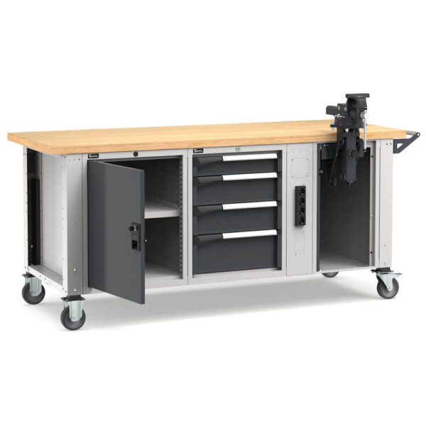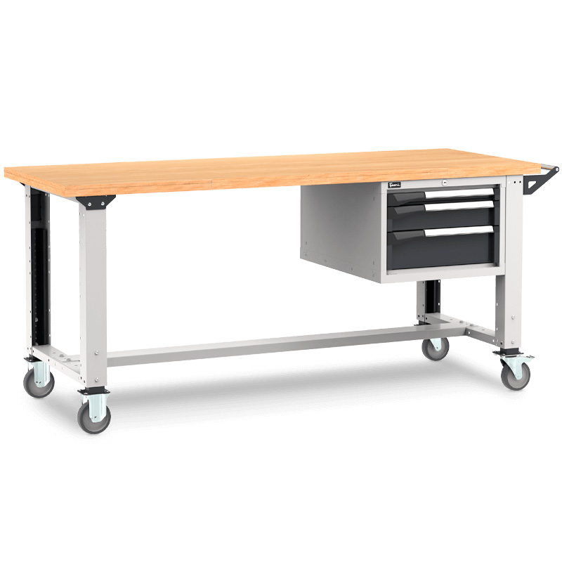 El banco de trabajo con ruedas permite tener a disposición todo el material necesario para el trabajo en un único lugar, con la posibilidad de desplazarlo con la máxima seguridad dentro de la empresa.