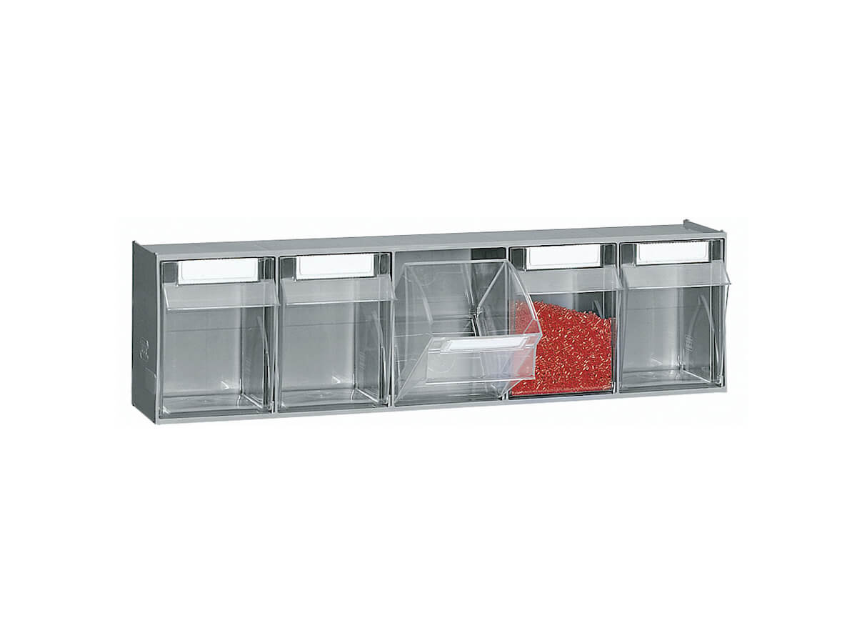 Rozwiązania w postaci szafek na drobne przedmioty Fami umożliwiają zorganizowane i bezpieczne przechowywanie małych komponentów. Dzięki szufladkom z przezroczystego tworzywa sztucznego o wysokiej wytrzymałości mechanicznej drobne przedmioty są stale widoczne, łatwo rozpoznawalne i bez trudu można je wyjmować.